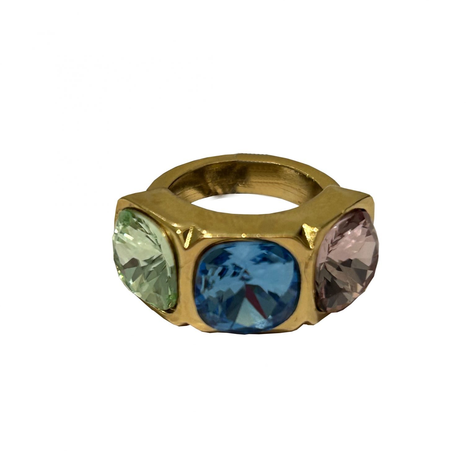 ANILLO BAÑO ORO Y TRIPLE SWAROVSKI