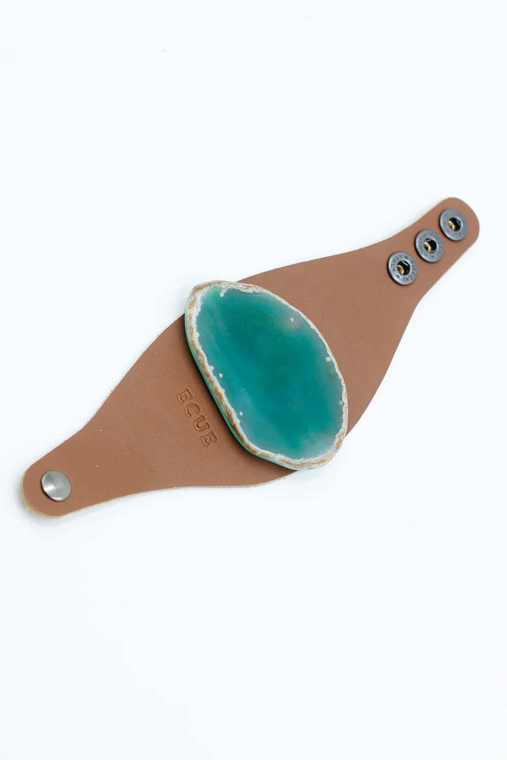 Pulsera de piel camel con ágata natural intercambiable.
