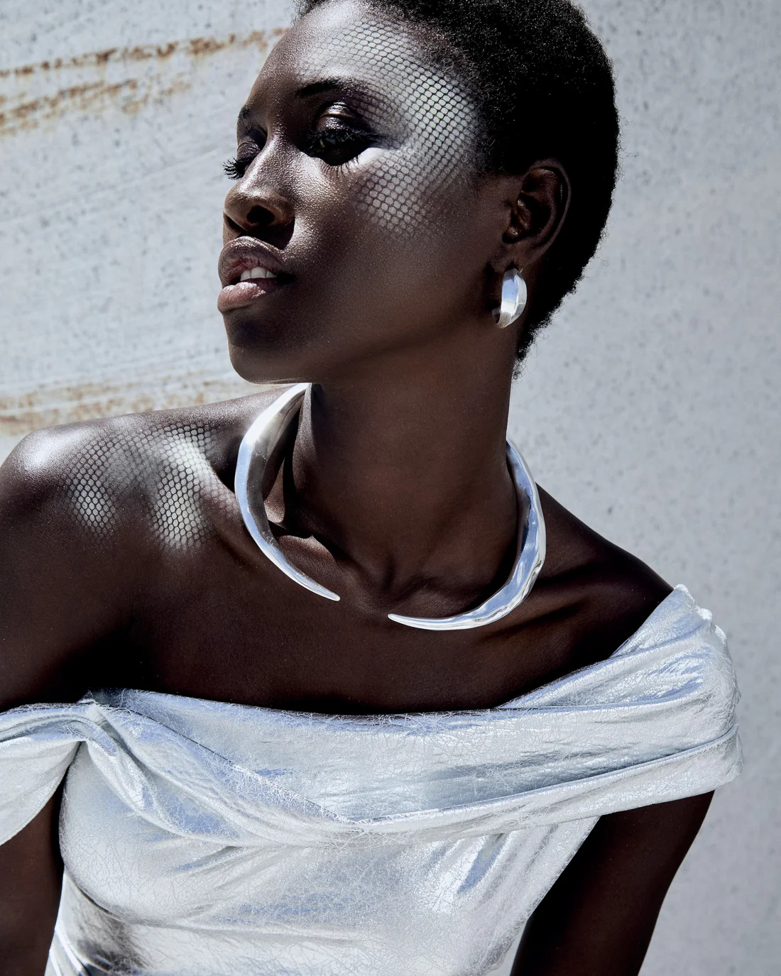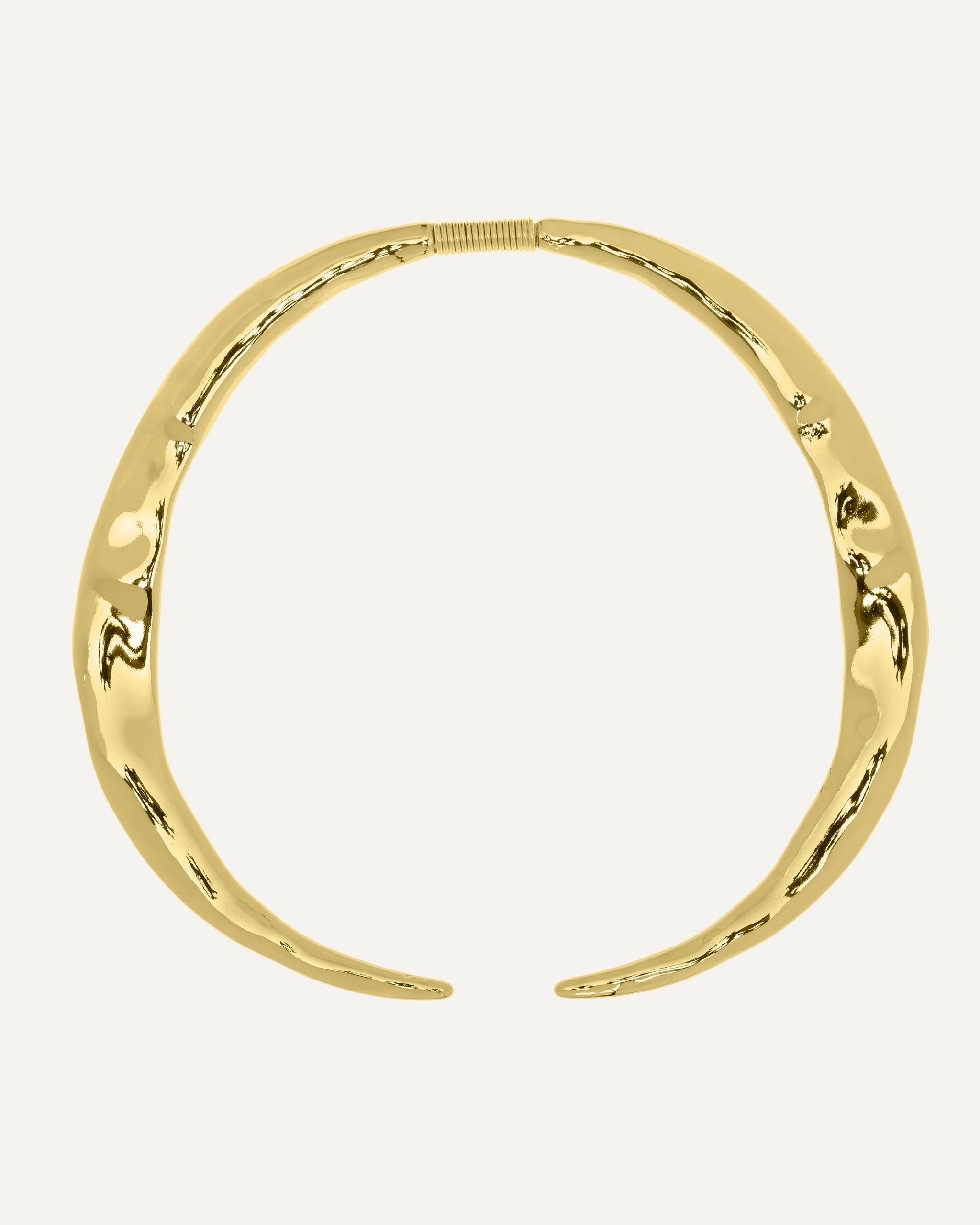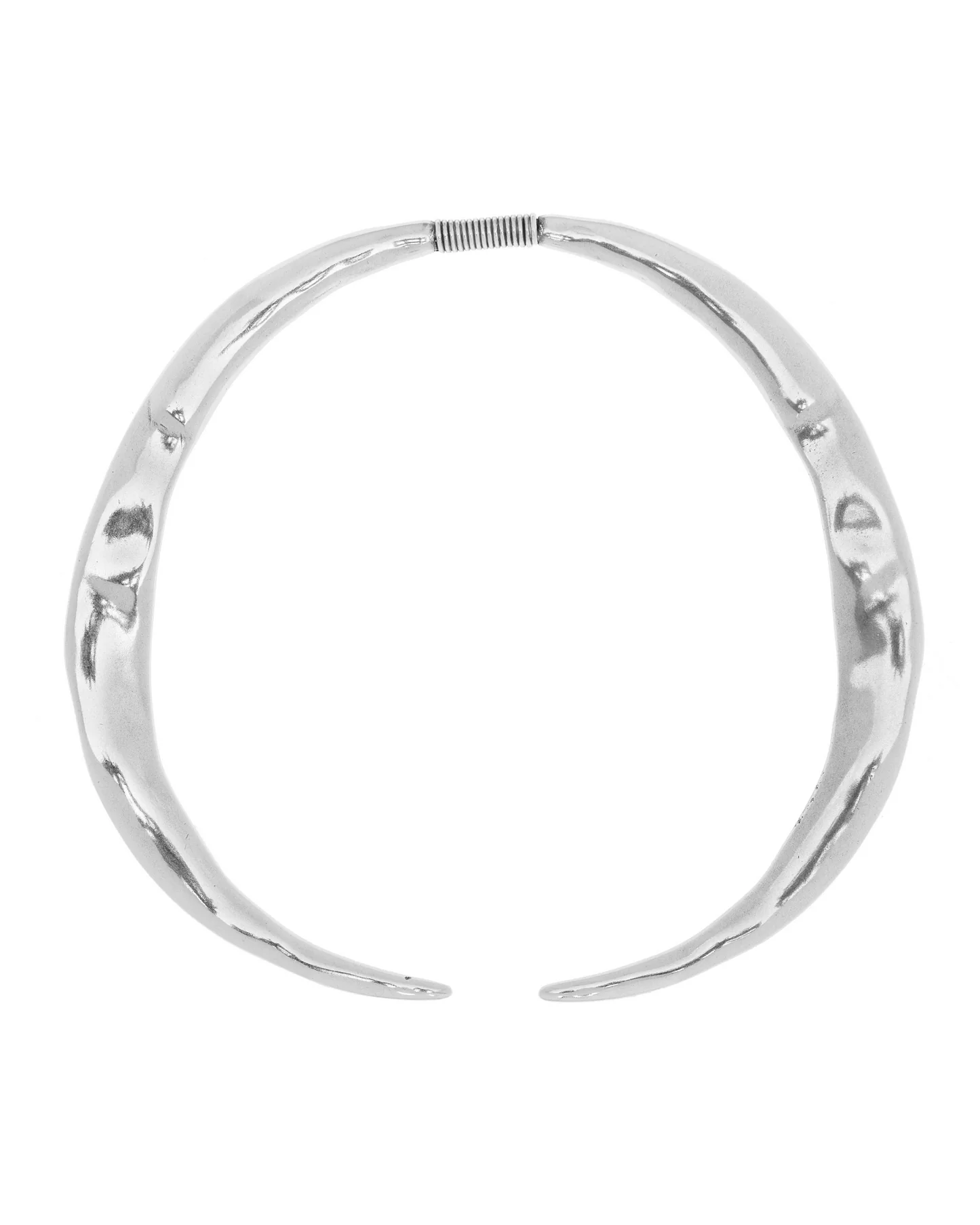 Collar rígido con forma orgánica y muelle central que facilita su colocación. Extremos acabados en punta.