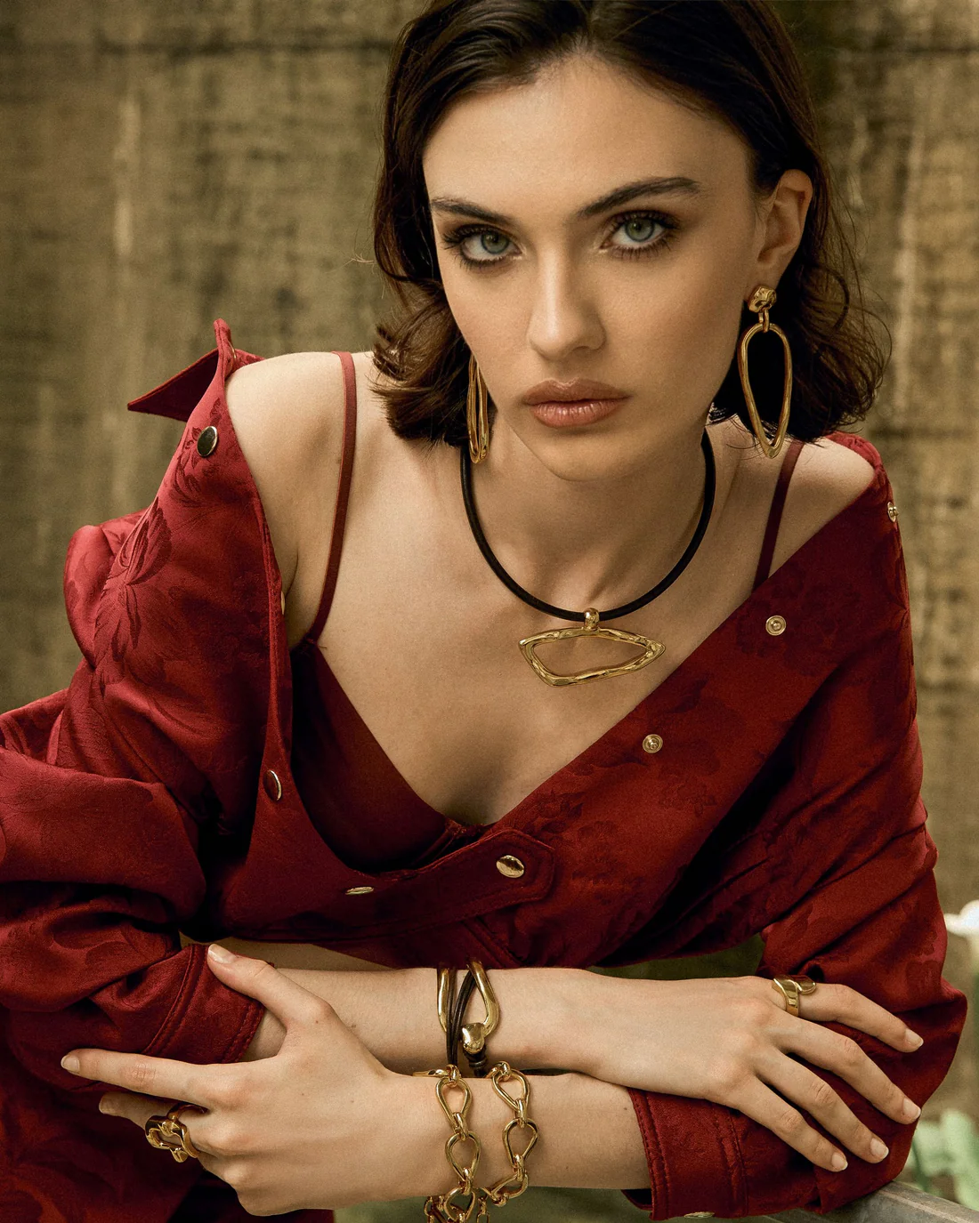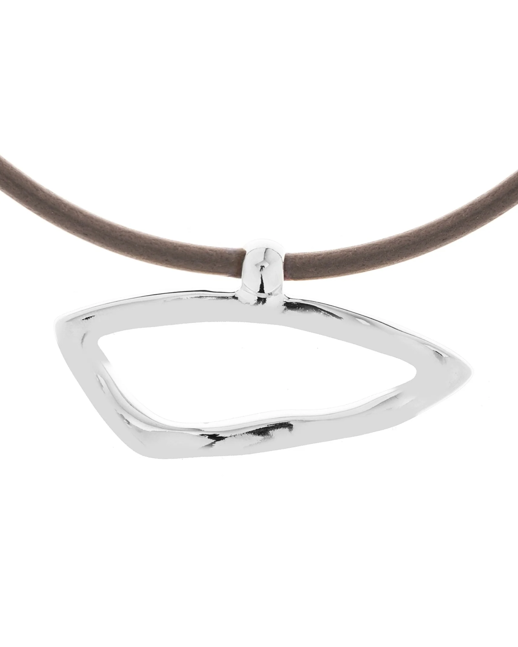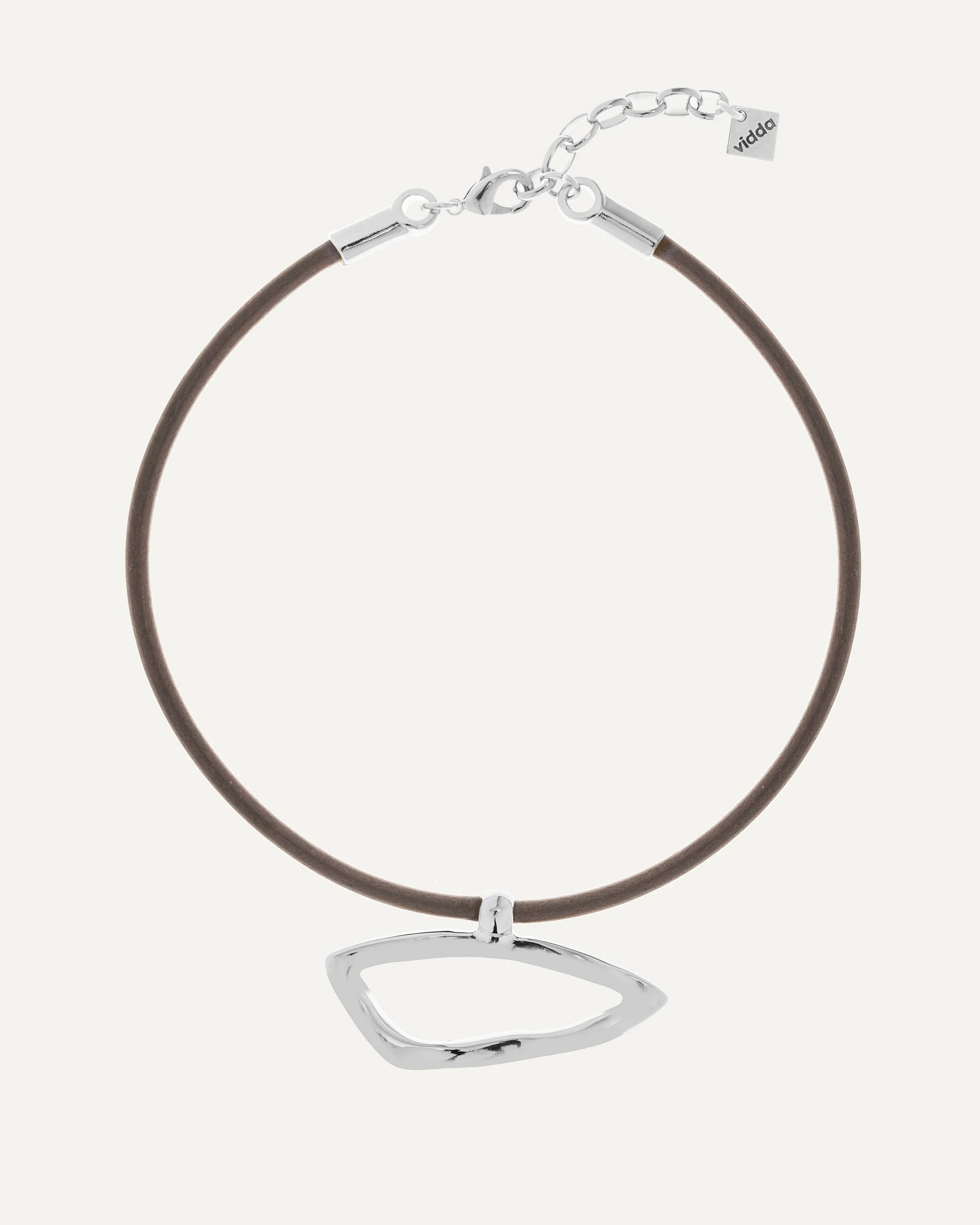 Collar corto de cordón de cuero grueso con un colgante asimétrico de forma orgánica.