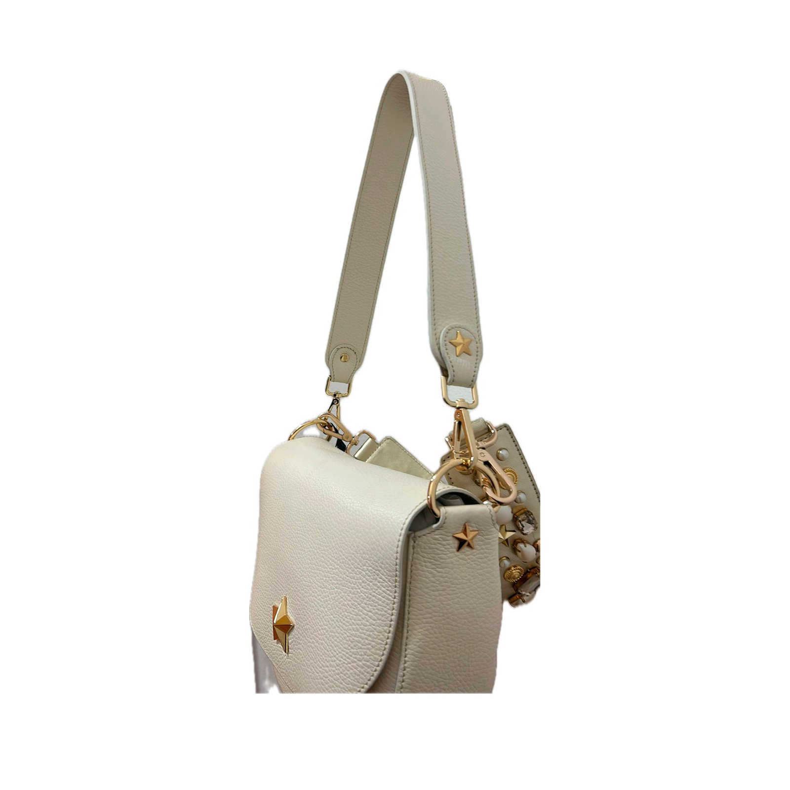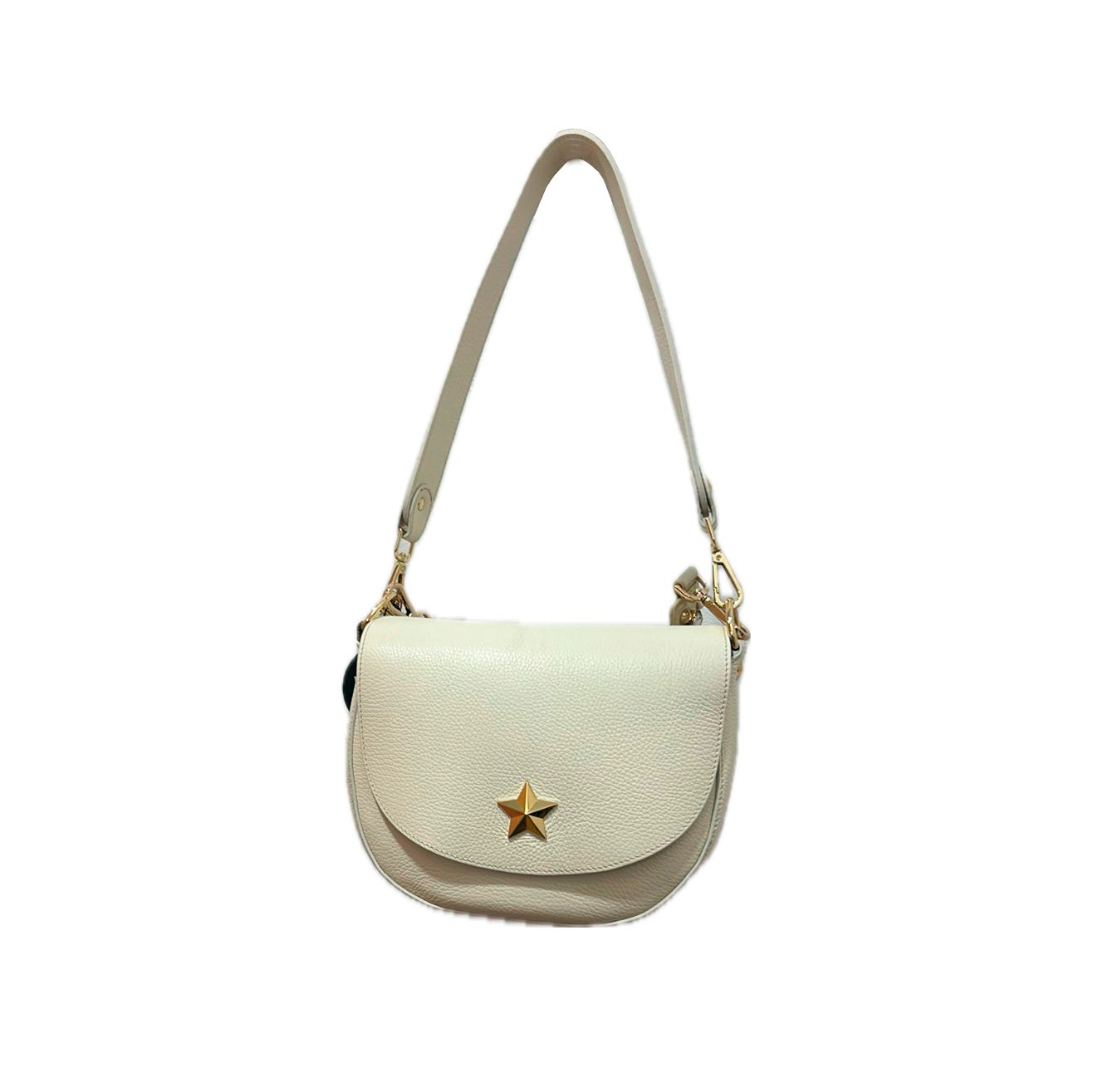Bolso bandolera M BRC, con forma ovalada firmada Massimo Braccialini, fabricado en piel, con cierre de solapa embellecido con la icónica estrella de metal dorado