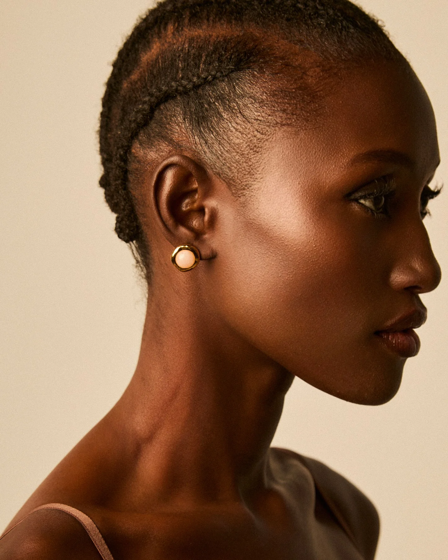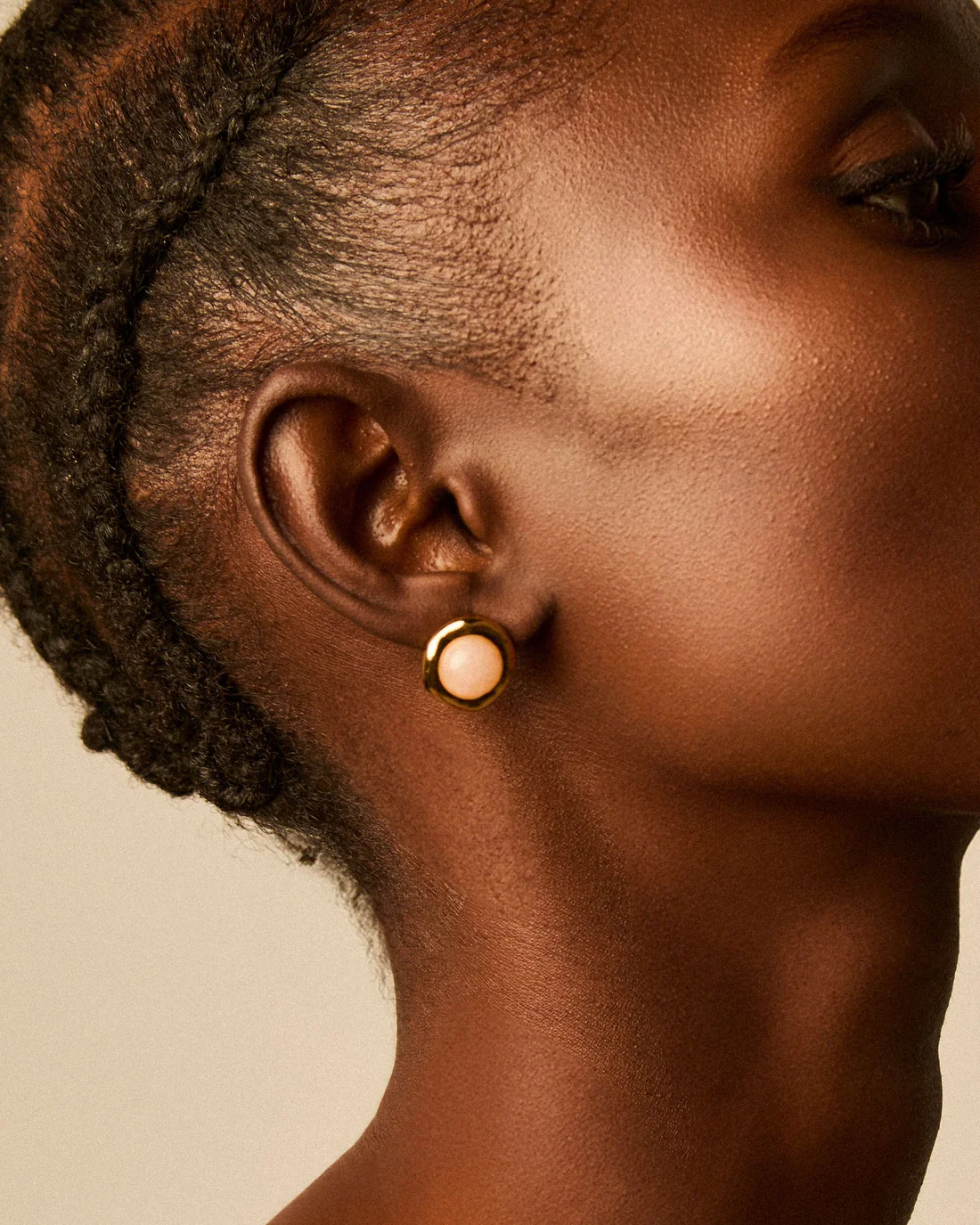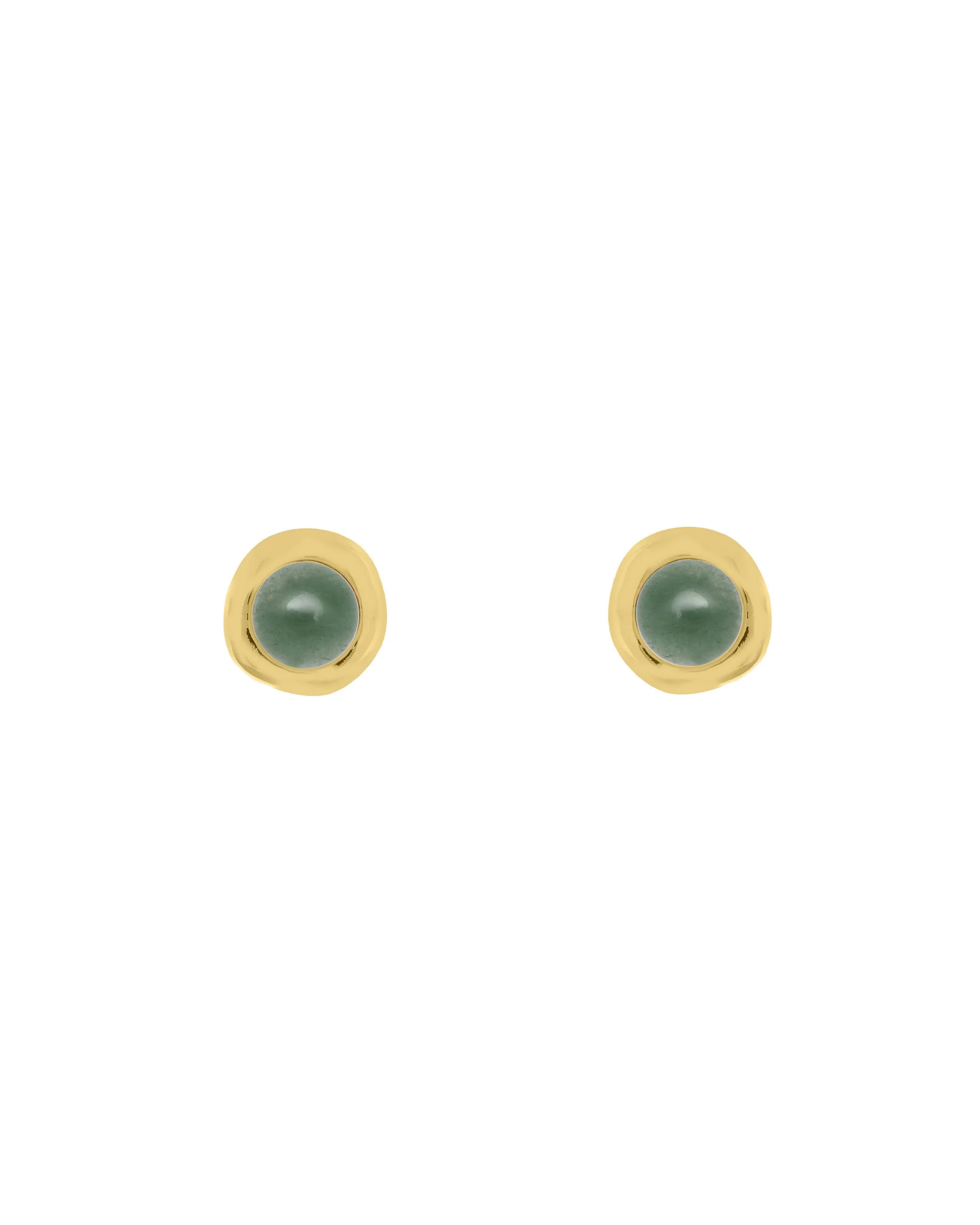 Pendientes redondos con piedra semipreciosa redonda en el centro.